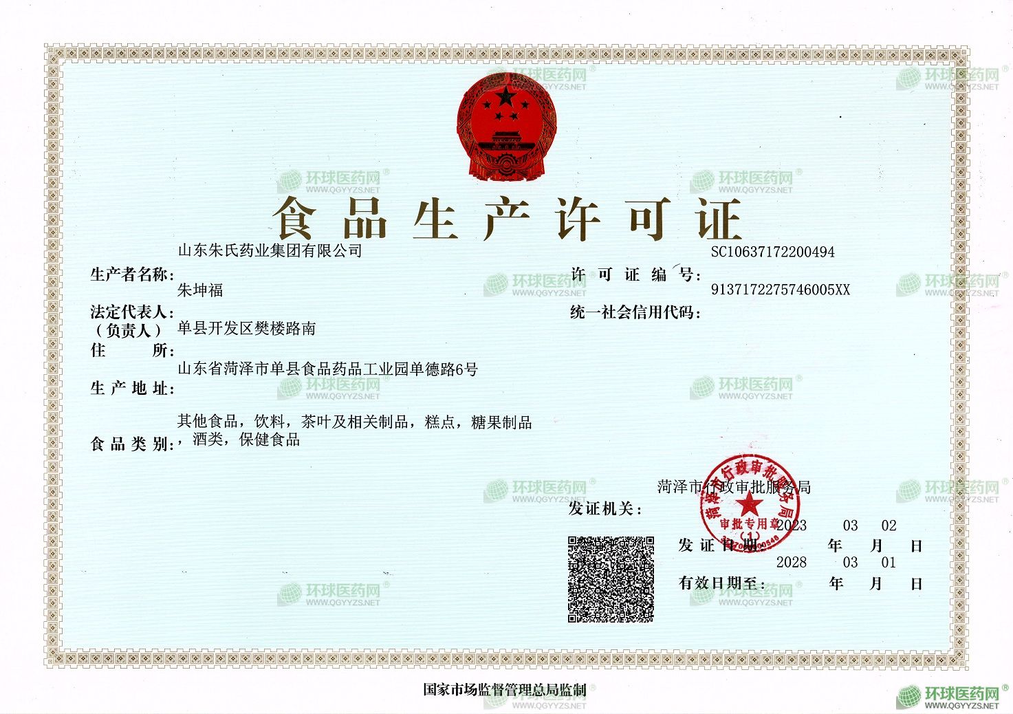 - 食品生產(chǎn)許可證