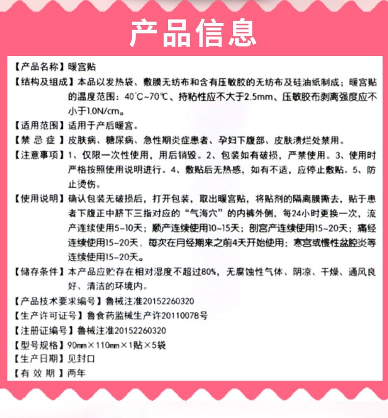 秦魯暖宮貼海旭暖宮貼由內(nèi)裝物和外袋組成,外袋由敷膜無紡布和含有壓敏膠的無紡布及硅油紙制成,適用于宮寒和產(chǎn)婦暖宮。