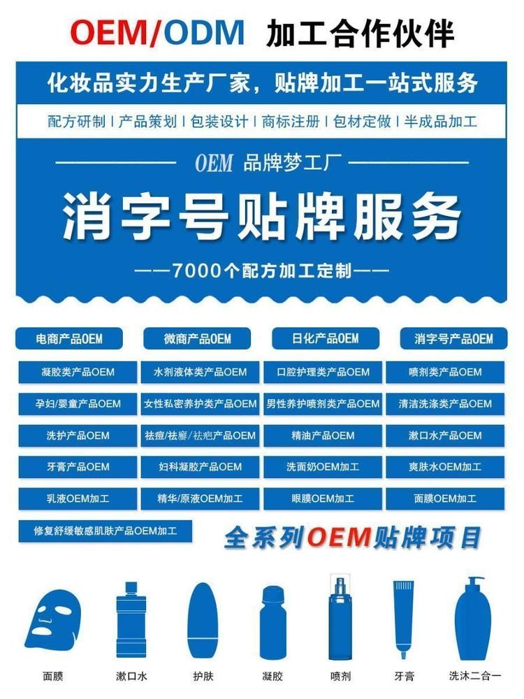 其他硬性條件都可以由代加工工廠幫忙解決或者給出建議,但是對(duì)于產(chǎn)品的定位品牌商還需要提前做好準(zhǔn)備,例如如果你走線下,當(dāng)然需要的品質(zhì)要好一些,如果你走的是日化線,電商之類的渠道,當(dāng)然你要節(jié)約成本,選擇價(jià)位相對(duì)較低的產(chǎn)品。所以定位好你的產(chǎn)品,這個(gè)很重要。
