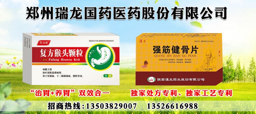 鄭州瑞龍制藥股份有限公司成立于1997年,主要產(chǎn)品包括中成藥和中藥飲片(含毒性飲片)兩大類。其中,中成藥包括乳安片、牛黃解毒片、復(fù)方丹參片、心腦康膠囊、速效止瀉膠囊、藿香正氣膠囊、乳安膠囊、復(fù)方板藍(lán)根顆粒、膽汁檳榔VB1膠囊等11個品種,可年生產(chǎn)片劑20億片、膠囊劑8億粒、顆粒劑500噸;中藥飲片有四大懷藥(懷地黃、懷山藥、懷菊花、懷牛膝)、丹參、半夏、黃芪、甘草、全蝎、當(dāng)歸、三七等近千個品規(guī),年生產(chǎn)量為5000噸;水飛朱砂粉等水飛產(chǎn)品年生產(chǎn)量為500噸。