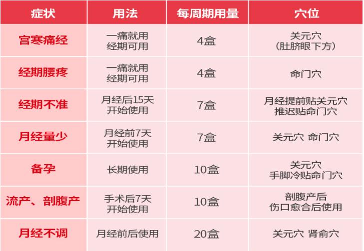 適用范圍:適用于宮寒痛經(jīng),經(jīng)期腰痛,月經(jīng)量少,月經(jīng)不調(diào),備孕期間,流產(chǎn)或剖腹產(chǎn)后使用。