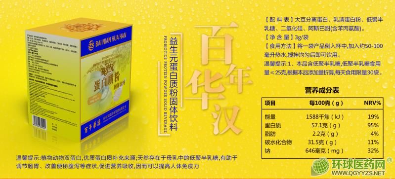 - 朱氏藥業(yè)益生元蛋白質(zhì)粉固體飲料 批準(zhǔn)文號: sc106371722004規(guī) 格: 3g/袋