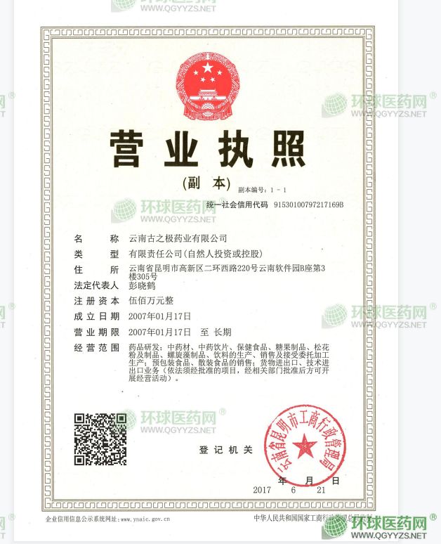 發(fā)證機(jī)關(guān): 云南省藥品監(jiān)督管理局