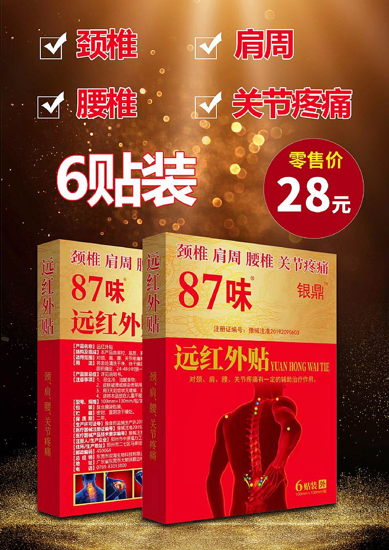 - 銀鼎87味遠(yuǎn)紅外貼 批準(zhǔn)文號(hào): 豫械注準(zhǔn)20192090603規(guī) 格: 6貼/盒