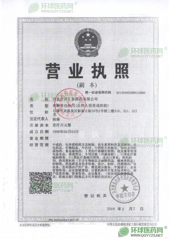 河北中祥匯泰醫(yī)藥有限公司位于社會經(jīng)濟學(xué)家費孝通先生稱為“黃金十字交叉處”的石家莊,辦公地址位于石家莊市鹿泉區(qū)新泰大街18號,于1990年05月03日在鹿泉區(qū)工商行政管理局注冊成立,注冊資本為1000萬人民幣,在公司發(fā)展壯大的29年里,我們始終為客戶提供好的產(chǎn)品和技術(shù)支持、健全的售后服務(wù),我公司主要經(jīng)營中成藥、化學(xué)原料藥及其制劑、抗生素原料藥及其制劑、生化藥品、生物制品、中藥材、中藥飲片的批發(fā)業(yè)務(wù),我們有好的產(chǎn)品和專業(yè)的銷售和技術(shù)團隊,如果您對我公司的產(chǎn)品服務(wù)有興趣,期待您在線留言或者來電咨詢