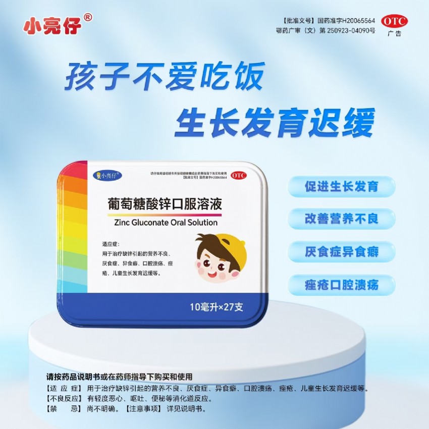 適應(yīng)癥:用于治療缺鋅引起的營養(yǎng)不良、厭食癥、異食癖、口腔潰瘍、痤瘡、兒童生長發(fā)育遲緩等。