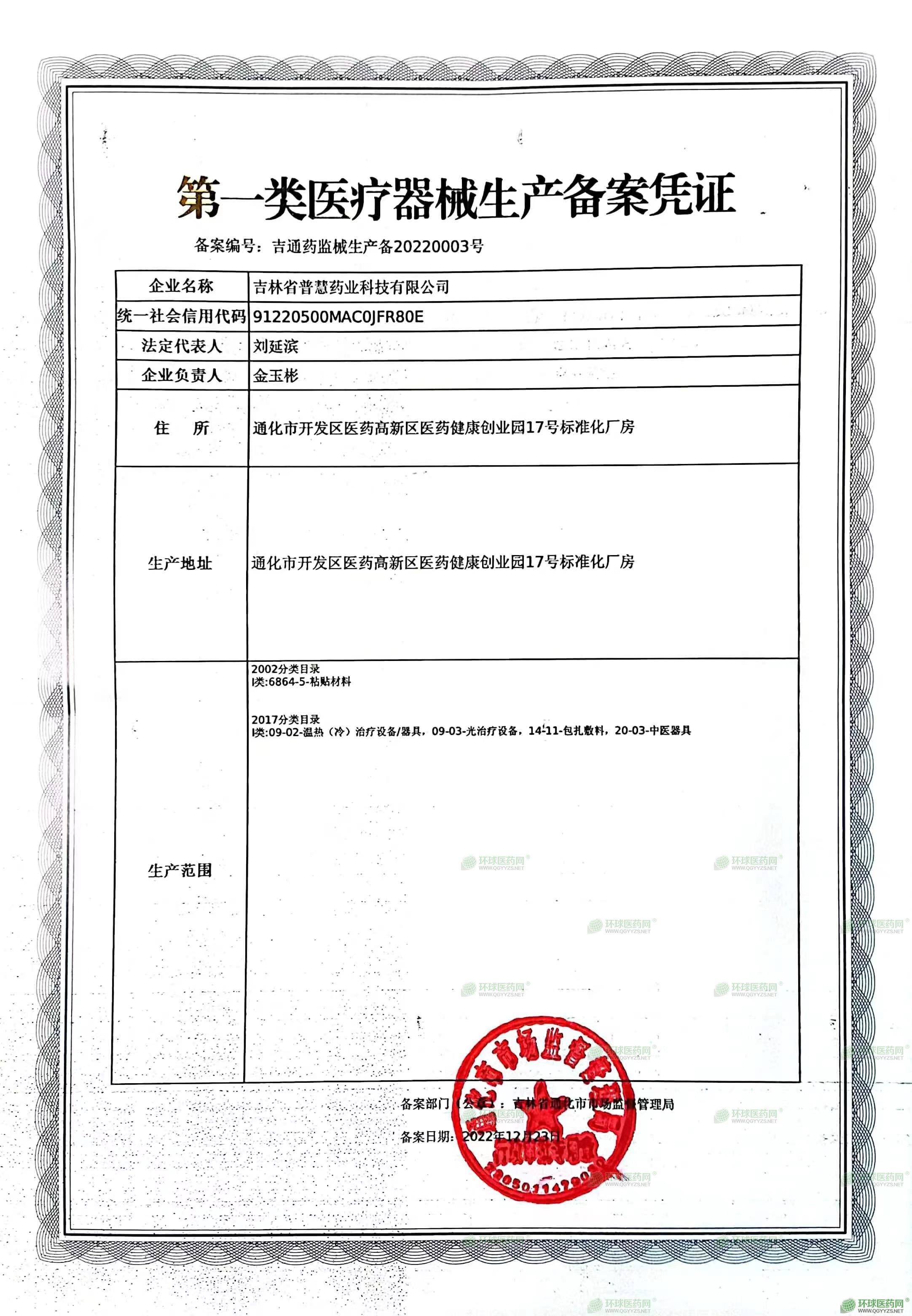 - 第一類醫(yī)療器械生產(chǎn)備案憑證
