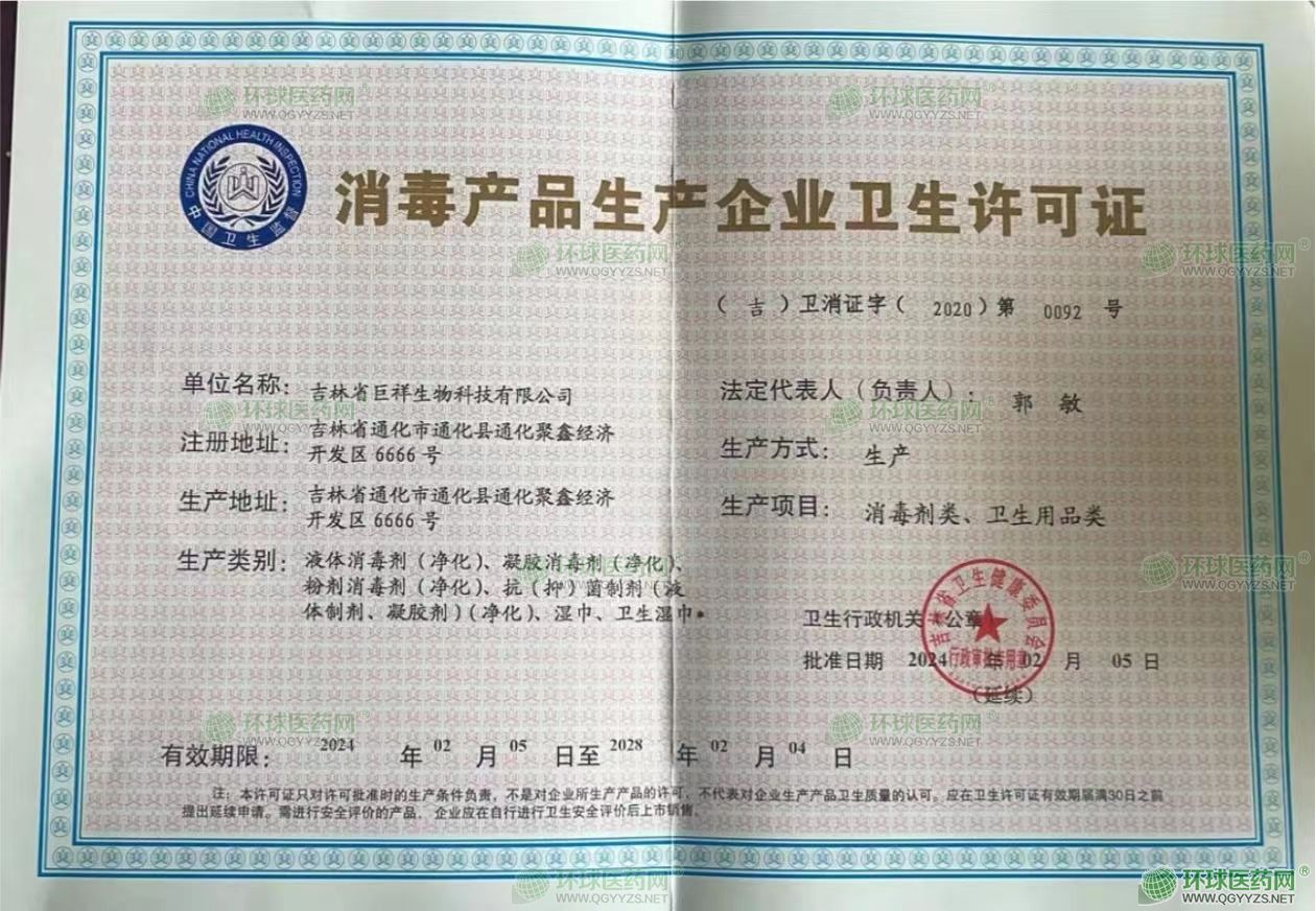 - 消毒產(chǎn)品生產(chǎn)企業(yè)衛(wèi)生許可證