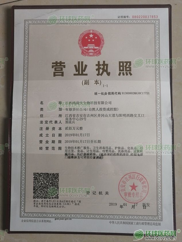 江西鴻滿天生物科技有限公司成立于2019年01月17日,注冊(cè)地位于江西省吉安市吉州區(qū)井岡山大道與陽(yáng)明西路交叉口商務(wù)中心29號(hào),法人代表為郭流兵。經(jīng)營(yíng)范圍包括生物技術(shù)推廣服務(wù);衛(wèi)生消毒用品、護(hù)膚品、化妝品、日用百貨、食品、計(jì)生用品、母嬰用品、洗滌用品、皮膚粘膜用品、醫(yī)療器械銷售。(依法須經(jīng)批準(zhǔn)的項(xiàng)目,經(jīng)相關(guān)部門批準(zhǔn)后方可開展經(jīng)營(yíng)活動(dòng))