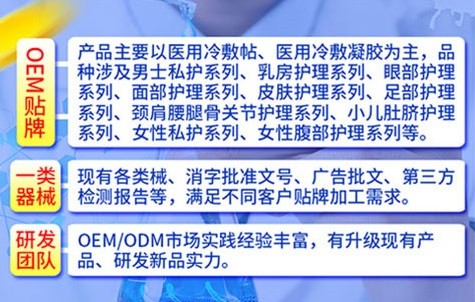 公司主要從事械字號、消字號產(chǎn)品的生產(chǎn)和銷售,目前自有成品60多種,成功合作的貼牌客戶遍布全國。主營:前列腺系列、婦科私護系列、乳房護理系列、面部護理系列、眼部護理系列、風濕系列、足部護理系列等。