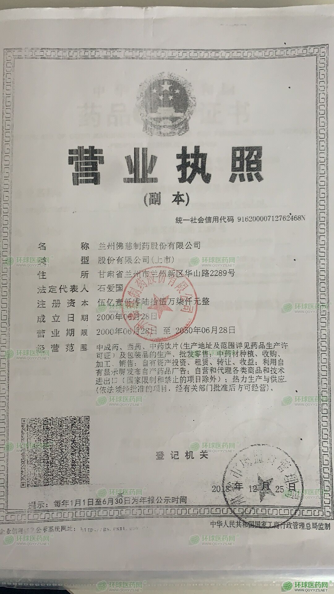 蘭州佛慈制藥股份有限公司是一家具有89年制藥歷史的市屬國(guó)有控股上市公司和“中華***”企業(yè),1929年創(chuàng)建于上海,1956年西遷蘭州,2011年在深交所**上市。目前,公司已發(fā)展成為集中藥材種植與加工、天然藥物與保健品研發(fā)、中藥現(xiàn)代劑型及保健食品生產(chǎn)銷售為一體的西北地區(qū)中醫(yī)藥行業(yè)的骨干企業(yè)。