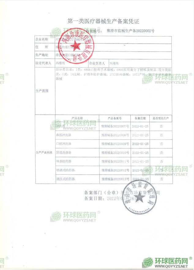 - 第一類(lèi)醫(yī)療器械生產(chǎn)備案憑證