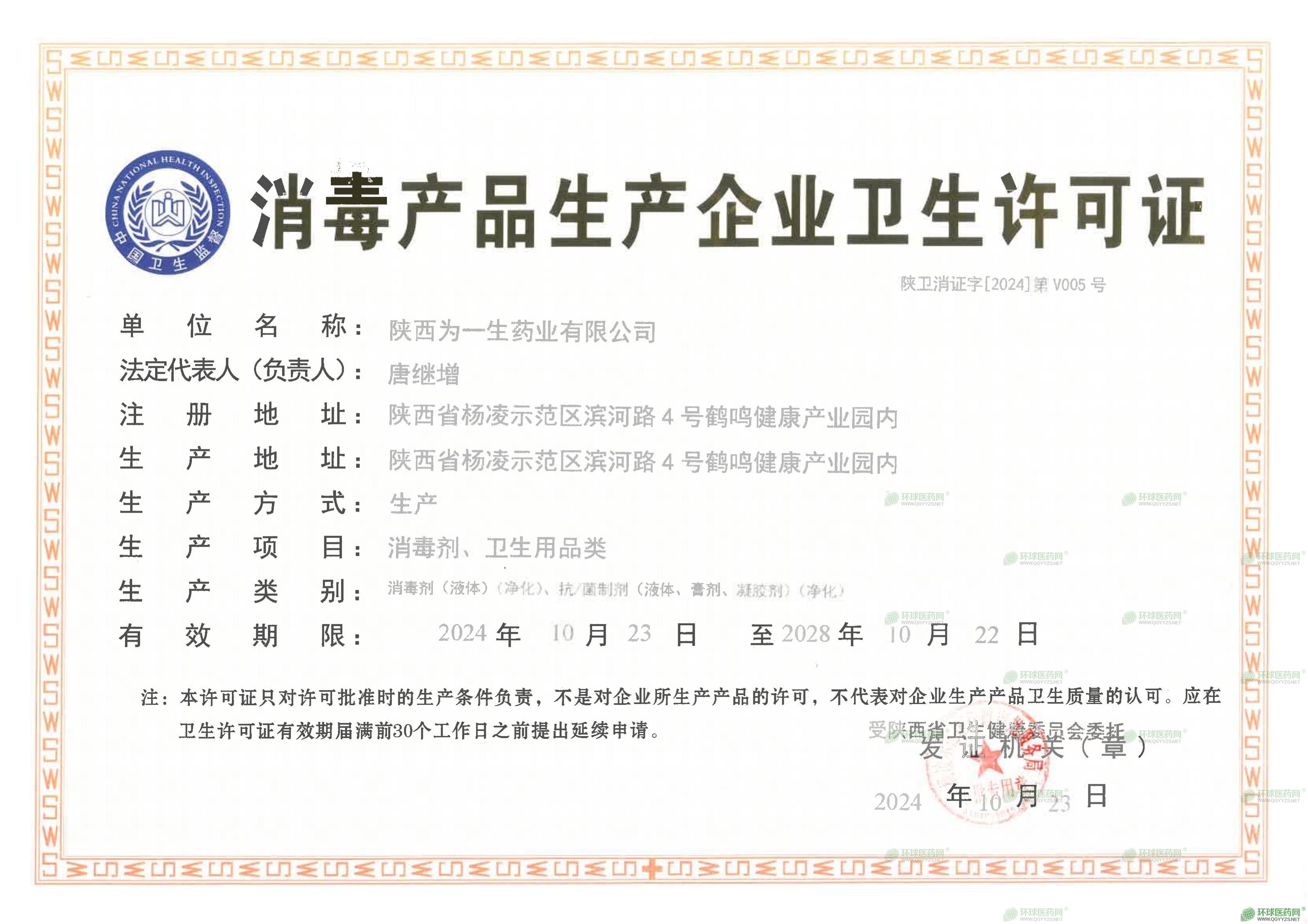 - 消毒產(chǎn)品生產(chǎn)衛(wèi)生許可證