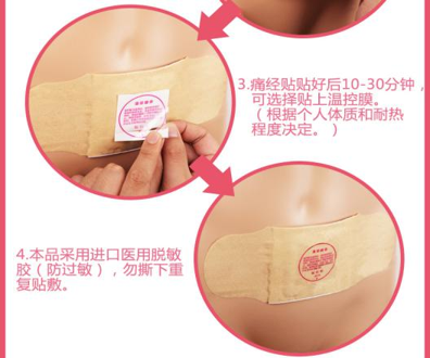 使用方法:將磁片對(duì)準(zhǔn)關(guān)元穴按壓貼好;痛經(jīng)貼貼好后 10-30 分鐘可選擇是否貼上溫控帖;本產(chǎn)品采用進(jìn)口醫(yī)用脫敏膠(防過(guò)敏),請(qǐng)勿重復(fù)貼敷。