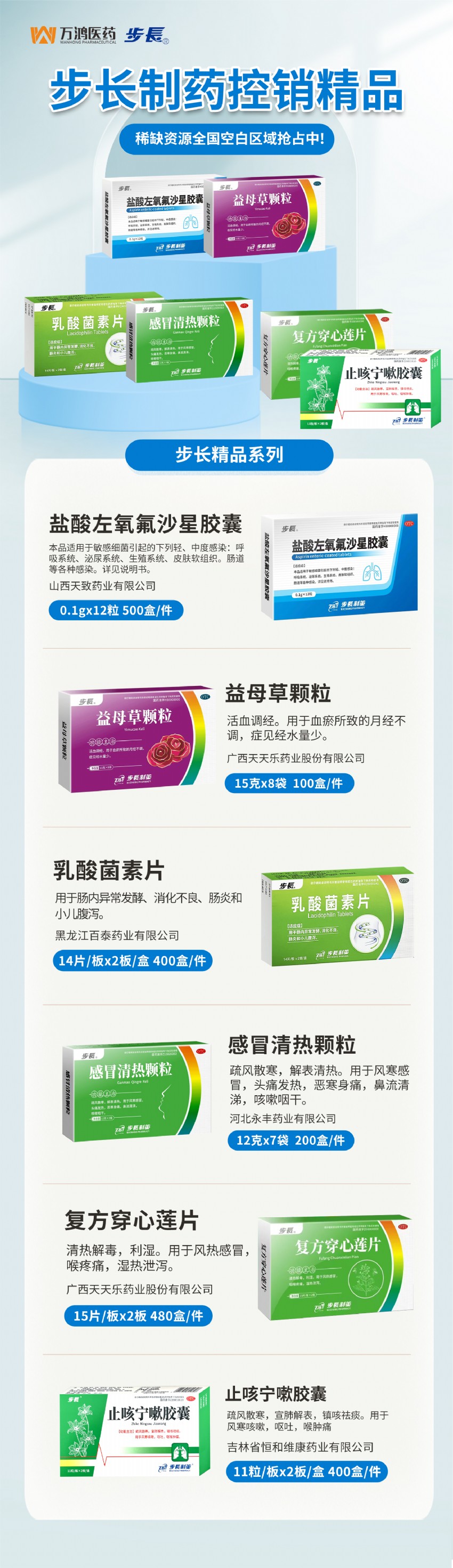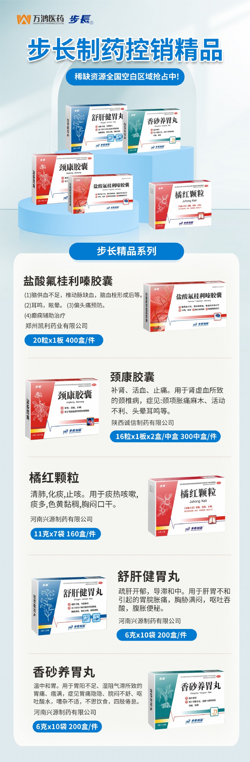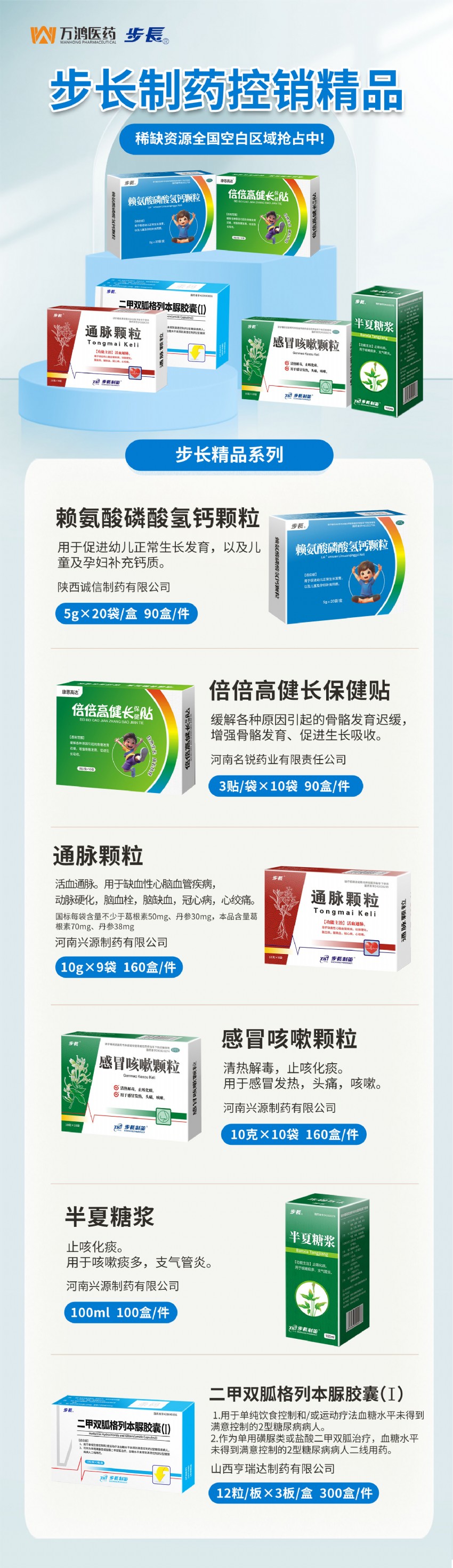 步長制藥控銷精品,全國空白區(qū)域搶占中!萬鴻醫(yī)藥攜步長多科室精品火熱招商!