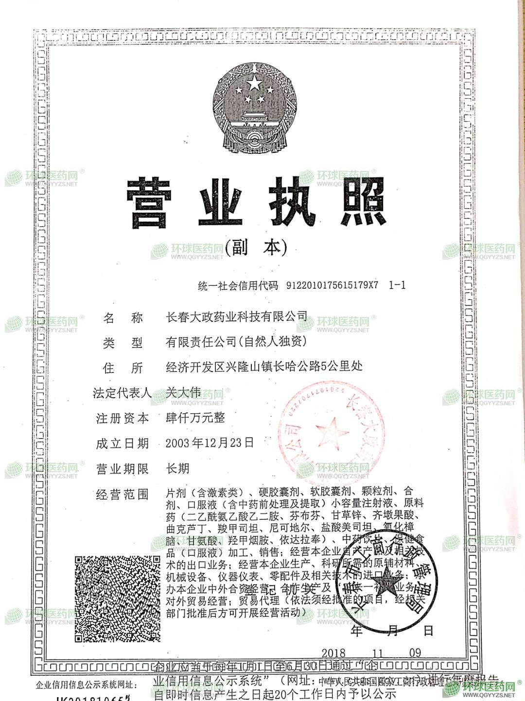 長春大政藥業(yè)科技有限公司