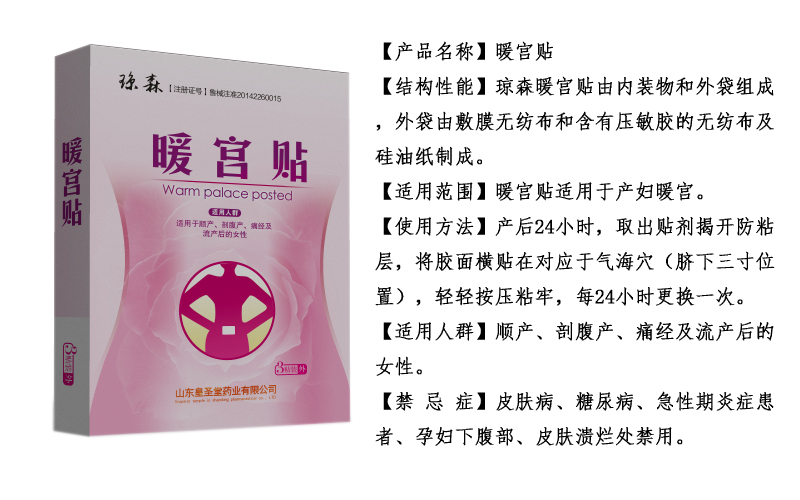 暖宮貼是臨床婦科常用的貼劑,充分根據(jù)物理治療學(xué)為基礎(chǔ),運(yùn)用中醫(yī)內(nèi)病外治理論和經(jīng)絡(luò)傳導(dǎo)治療原理,將穴位炙熱療法和遠(yuǎn)紅外物理療法相結(jié)合,通過(guò)對(duì)氣海穴的遠(yuǎn)紅外溫?zé)犰僦耍ń?jīng)絡(luò)、正血脈、激活子宮的活動(dòng)機(jī)能,促進(jìn)血管、子宮正常收縮、加快子宮內(nèi)組織的修復(fù)生長(zhǎng),增強(qiáng)免疫力,防止產(chǎn)后腹痛,同時(shí)提高產(chǎn)婦自身的生理機(jī)能。產(chǎn)生對(duì)受損器官的修補(bǔ)和再生能力,具有溫經(jīng)散寒、暖宮止痛、調(diào)和氣血之作用,有效防止“月子病”是專為產(chǎn)婦、流產(chǎn)女性及月經(jīng)不調(diào)、痛經(jīng)女性研制的產(chǎn)后月子護(hù)理用品。