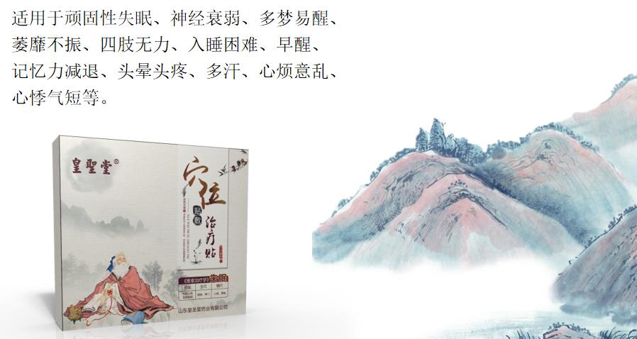 失眠貼通過穴位貼敷,滋補腎陽、疏肝健脾,平衡陰陽。使心、脾、肝、膽、腎五臟相互協調,實現臟腑和諧,目暝而寐,可輕松入眠。安神益腦,深層睡眠陰陽失調,五臟失衡,情志不悅,精神過勞,受驚嚇等多會誘發(fā)腦功能失衡,皇圣堂失眠貼自涌泉、神門、心俞、脾俞穴位進入經絡,安神定志,可進入深度睡眠狀態(tài)。深度養(yǎng)護,高品質睡眠**打通全身經絡,改善微循環(huán),營養(yǎng)神經、五臟,養(yǎng)心安神,提高睡眠時間,調節(jié)大腦神經細胞,減弱睡眠時大腦興奮度,中樞五臟和諧,擁有快速、高質量睡眠。