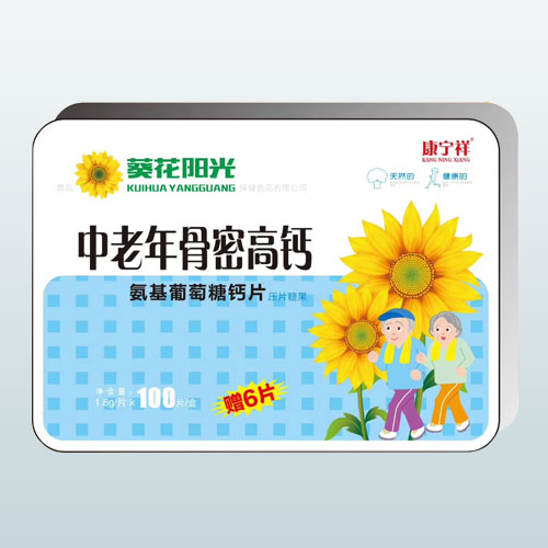 - 葵花陽光中老年骨密高鈣氨基葡萄糖鈣片(鐵盒) 批準(zhǔn)文號: SC11334122205528規(guī) 格: 1.8g*100片