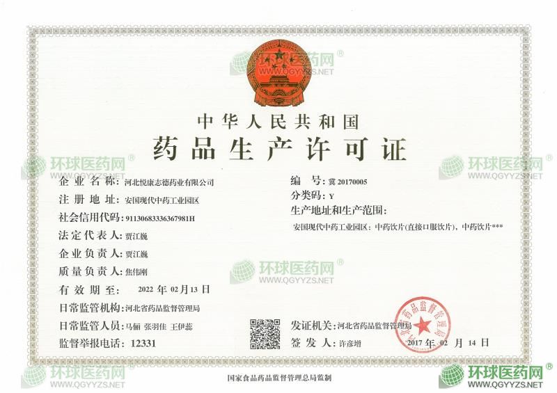 發(fā)證機關: 河北省藥品監(jiān)督管理局
