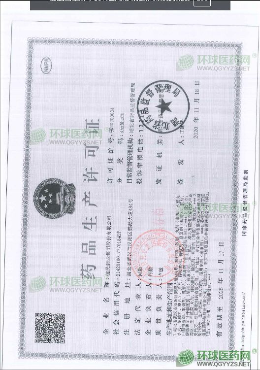 發(fā)證機(jī)關(guān): 湖北省藥品監(jiān)督管理局