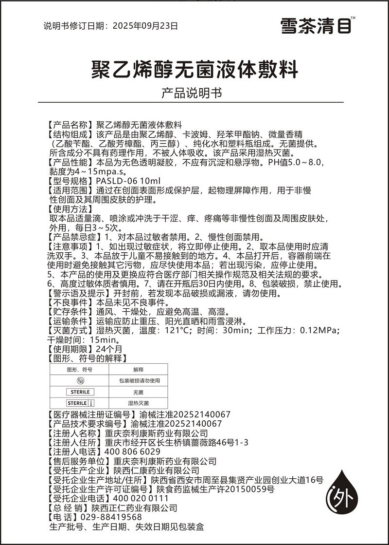 雪茶清目™聚乙烯醇無(wú)菌液體敷料