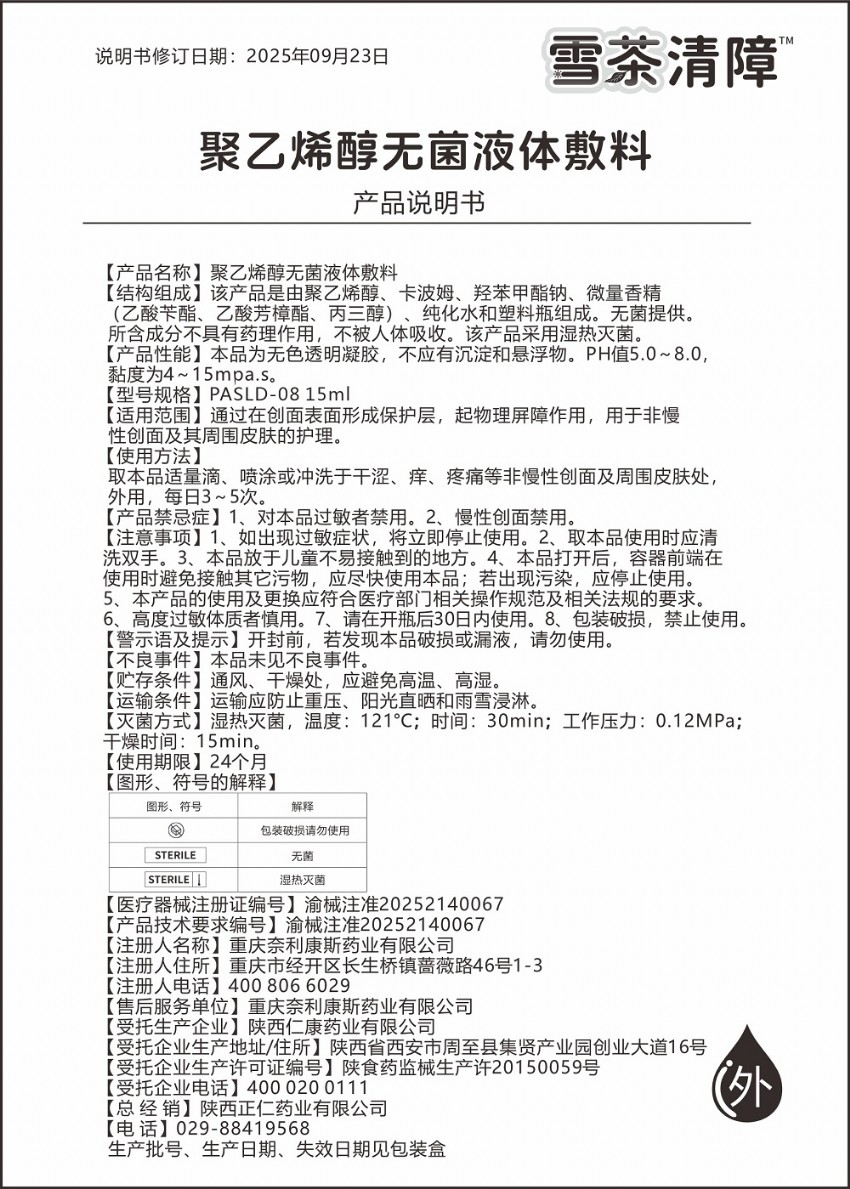 雪茶清障™聚乙烯醇無(wú)菌液體敷料