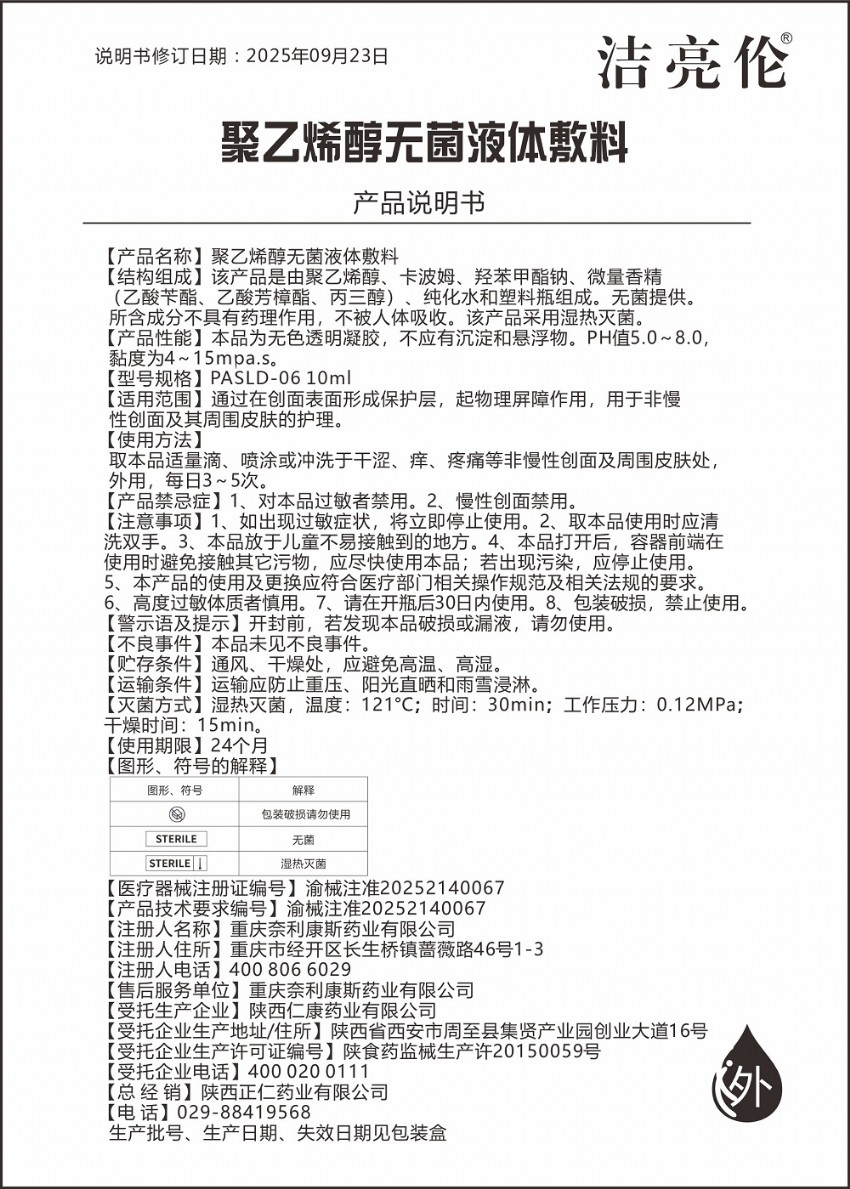 潔亮倫聚乙烯醇無(wú)菌液體敷料