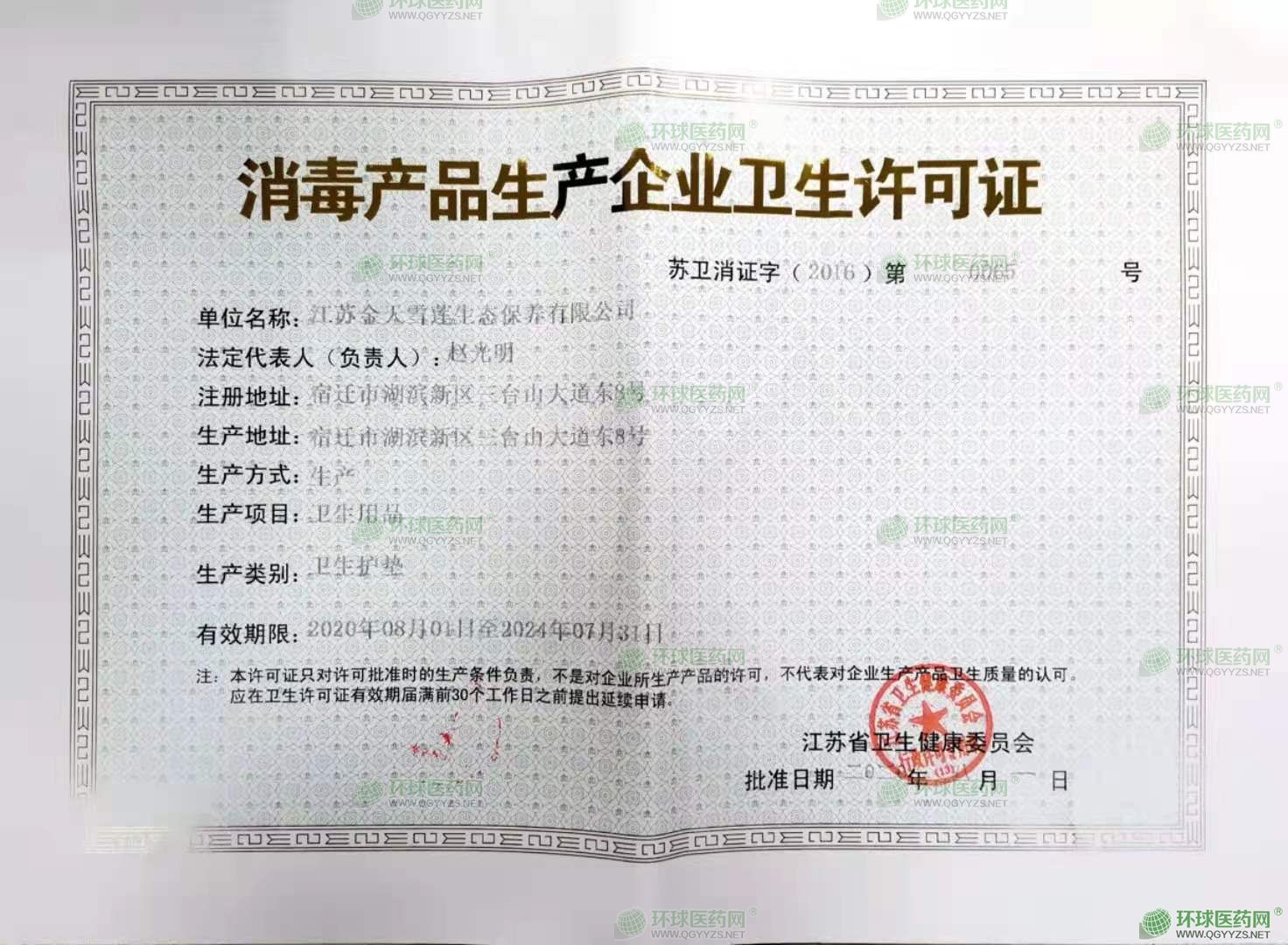 - 消毒產(chǎn)品生產(chǎn)企業(yè)衛(wèi)生許可證