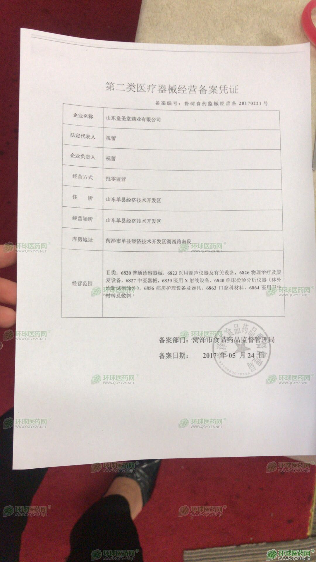 - 第二類醫(yī)療器械經(jīng)營備案憑證
