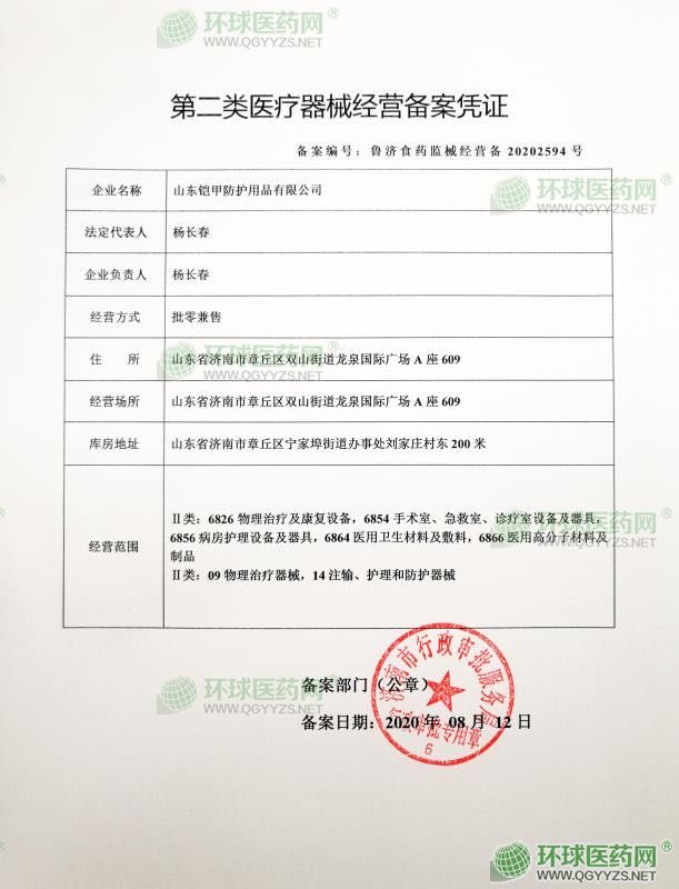 山東鎧甲防護(hù)用品有限公司成立于2020年07月09日,注冊地位于山東省濟(jì)南市章丘區(qū)雙山街道龍泉國際廣場A座609,法定代表人為楊長春。經(jīng)營范圍包括防護(hù)口罩、隔離服、手套、紙制品、無紡布制品、紡織品、廚師帽、條帽、醫(yī)療器械、衛(wèi)生用品、消毒用品(以上均不含危險化學(xué)品)、手提袋、凈水設(shè)備、空氣凈化設(shè)備、勞保用品、日用百貨、工藝品(象牙及其制品除外)、化妝品、洗化用品、建材、五金、電子產(chǎn)品、辦公用品、文體用品、包裝材料、計算機(jī)軟硬件及配件、電氣設(shè)備、機(jī)械設(shè)備、辦公設(shè)備、通訊設(shè)備、健身器材、消防器材的銷售;醫(yī)療設(shè)備的租賃;貨物進(jìn)出口以及其他按法律、法規(guī)、國務(wù)院決定等規(guī)定未禁止和不需經(jīng)營許可的項目。(依法須經(jīng)批準(zhǔn)的項目,經(jīng)相關(guān)部門批準(zhǔn)后方可開展經(jīng)營活動)