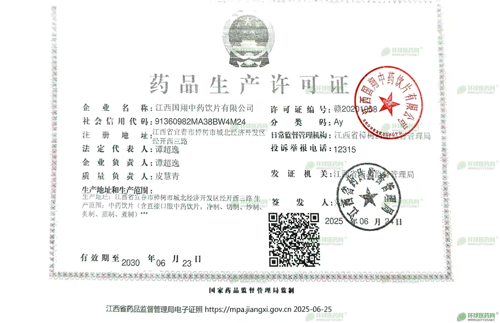發(fā)證機(jī)關(guān): 江西省藥品監(jiān)督管理局