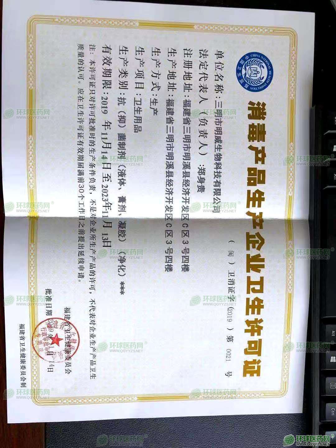- 消毒產(chǎn)品生產(chǎn)許可證
