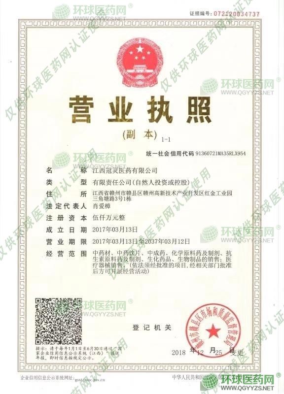 江西冠靈醫(yī)藥有限公司成立于2017年03月13日,注冊地位于江西省贛州市贛縣區(qū)贛州高新技術(shù)產(chǎn)業(yè)開發(fā)區(qū)紅金工業(yè)園三角塘路3號1棟,法定代表人為肖愛樟。經(jīng)營范圍包括中藥材、中藥飲片、中成藥、化學(xué)原料藥及制劑、抗生素原料藥及制劑、生化藥品、生物制品的銷售;醫(yī)療器械銷售。(依法須經(jīng)批準的項目,經(jīng)相關(guān)部門批準后方可開展經(jīng)營活動)江西冠靈醫(yī)藥有限公司對外投資1家公司。