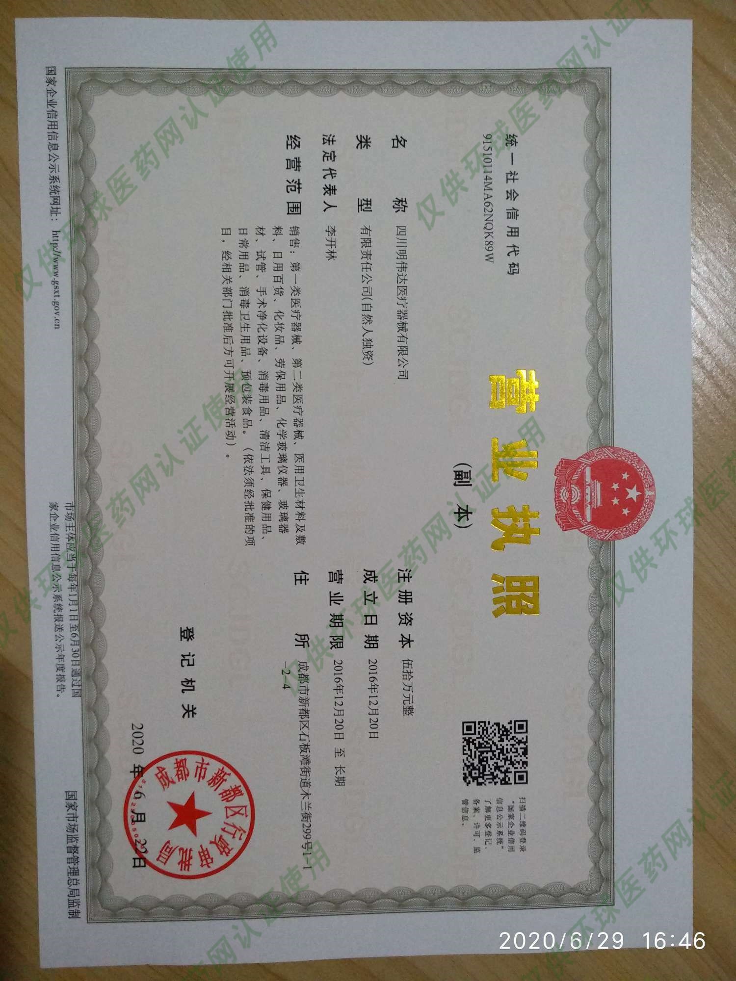 四川明偉達(dá)醫(yī)療器械有限公司成立于2016年12月20日,注冊地位于成都市新都區(qū)石板灘街道木蘭街299號1-1-2-4,法定代表人為李開林。經(jīng)營范圍包括銷售:**類醫(yī)療器械、第二類醫(yī)療器械、醫(yī)用衛(wèi)生材料及敷料、日用百貨、化妝品、勞保用品、化學(xué)玻璃儀器、玻璃器材、試管、手術(shù)凈化設(shè)備、消毒用品、清潔工具、保健用品、日常用品、消毒衛(wèi)生用品、預(yù)包裝食品。(依法須經(jīng)批準(zhǔn)的項(xiàng)目,經(jīng)相關(guān)部門批準(zhǔn)后方可開展經(jīng)營活動(dòng))。