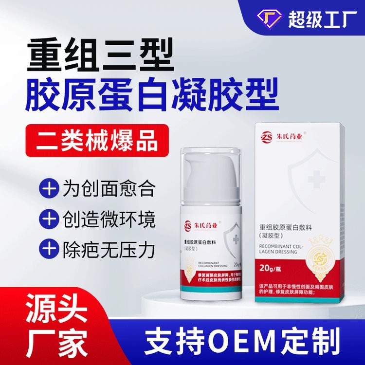 以重組人源化膠原蛋白為核心,通過生物工程技術(shù)模擬人體天然膠原蛋白結(jié)構(gòu),具有高生物相容性和低免疫原性,能夠直接作用于受損組織,促進(jìn)細(xì)胞增殖與修復(fù)。劑型多樣凝膠型:適用于淺表傷口、燒傷、燙傷及皮膚科疾病,柔軟貼合創(chuàng)面,形成保護(hù)屏障,減少感染風(fēng)險。噴霧型:針對大面積創(chuàng)傷、皮膚潰瘍或難以觸及的傷口,通過噴霧快速覆蓋創(chuàng)面,操作便捷,適合急救或術(shù)后護(hù)理。痔瘡型:專為肛腸疾病設(shè)計,緩解腫痛、止血消炎,促進(jìn)局部組織修復(fù),減少復(fù)發(fā)風(fēng)險。**性與有效性產(chǎn)品通過嚴(yán)格的質(zhì)量控制體系,確保無菌、***性,符合醫(yī)療器械標(biāo)準(zhǔn)。臨床數(shù)據(jù)顯示,重組膠原蛋白敷料可加速傷口愈合,減少疤痕形成,提升患者生活質(zhì)量。