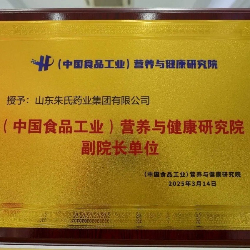 山東朱氏藥業(yè)集團(tuán)榮獲“中國(guó)食品工業(yè)營(yíng)養(yǎng)與健康研究院副院長(zhǎng)單位”