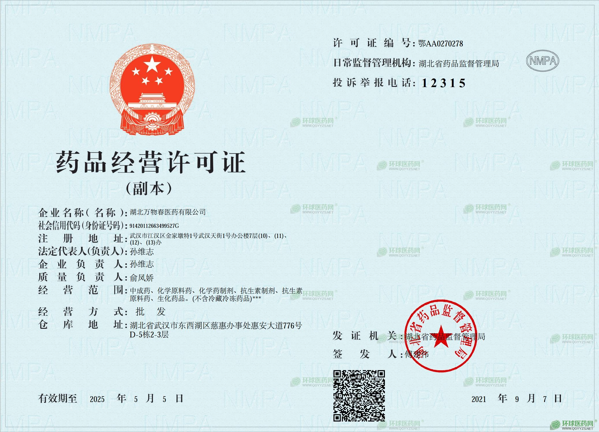 湖北萬物春醫(yī)藥有限公司。 [經(jīng)營模式]:貿(mào)易型