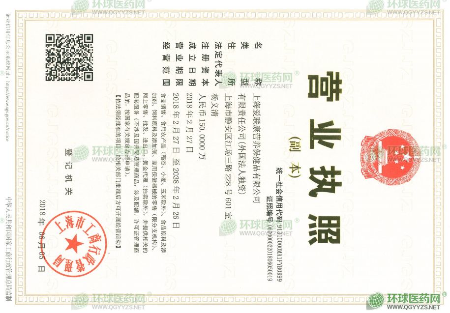 上海愛聯(lián)康營養(yǎng)品有限公司