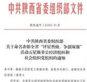 近日,中共陜西省委組織部發(fā)布關(guān)于命名表彰全省“評星晉級、爭創(chuàng)雙強(qiáng)”活動五星級非公經(jīng)濟(jì)組織和社會組織黨組織的通知,按照“黨組織班子好、黨員隊(duì)伍好、生產(chǎn)經(jīng)營好、企業(yè)文化好、勞動關(guān)系好、社會評價好”的標(biāo)準(zhǔn),西安阿房宮藥業(yè)股份有限公司黨總支成功評定為“五星級黨組織”。