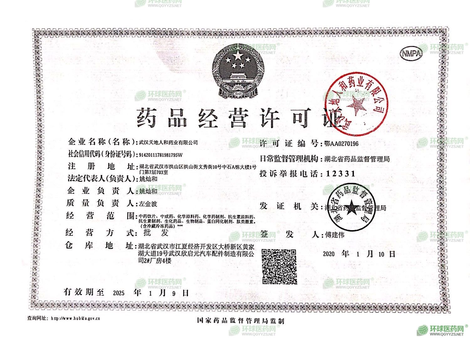 武漢天地人和藥業(yè)有限公司成立于2005年12月27日,注冊地位于洪山區(qū)洪山街文秀街10號中石A棟大樓1號門第7層703室,法定代表人為左金波。經(jīng)營范圍包括中成藥、中藥飲片、化學原料藥、化學藥制劑、抗生素制劑、抗生素原料藥、生化藥品、生物制品、蛋白同化制劑、肽類激素的批發(fā);醫(yī)療器械Ⅰ、Ⅱ、Ⅲ類的銷售;預包裝食品銷售(不含冷藏冷凍食品);特殊食品銷售(保健食品);衛(wèi)生用品、消毒用品、電子產(chǎn)品、化妝品、辦公用品、日用品、機電設(shè)備、儀器儀表、實驗室設(shè)備、分析檢測儀器及配件、金屬材料、醫(yī)療器械輔材的銷售;醫(yī)藥技術(shù)開發(fā)、技術(shù)咨詢。(涉及許可經(jīng)營項目,應(yīng)取得相關(guān)部門許可后方可經(jīng)營)武漢天地人和藥業(yè)有限公司具有8處分支機構(gòu)。