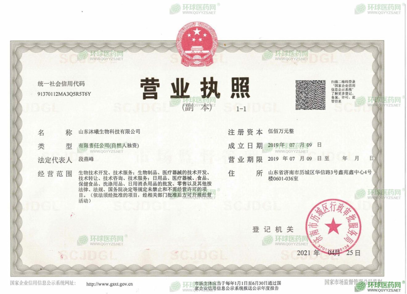 山東沐曦生物科技有限公司成立于2019年07月09日,注冊地位于山東省濟南市歷城區(qū)華信路3號鑫苑鑫中心4號樓0601-036室,法定代表人為段燕峰。經(jīng)營范圍包括生物技術(shù)開發(fā)、技術(shù)服務(wù);生物制品、醫(yī)療器械的技術(shù)開發(fā)、技術(shù)轉(zhuǎn)讓、技術(shù)咨詢、技術(shù)服務(wù);日用品、醫(yī)療器械、食品、保健食品、洗滌用品、日用消殺用品的批發(fā)、零售以及其他按法律、法規(guī)、國務(wù)院決定等規(guī)定未禁止和不需經(jīng)營許可的項目。(依法須經(jīng)批準的項目,經(jīng)相關(guān)部門批準后方可開展經(jīng)營活動)
