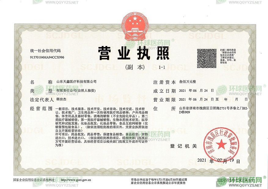 山東天鑫醫(yī)療科技有限公司前身濟寧翰辰醫(yī)藥有限公司,成立于2012年,