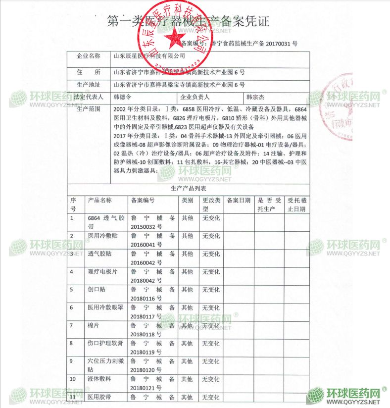 現(xiàn)已成為全國醫(yī)療器械類產(chǎn)品、化妝品及藥食同源食品生產(chǎn)*有影響力的企業(yè)之一。公司從生產(chǎn)、銷售一類二類醫(yī)療器械。公司主營產(chǎn)品:透氣膠貼,醫(yī)用冷敷貼,棉片,創(chuàng)口貼,醫(yī)用冷敷眼罩,理療電極片,穴位壓力刺激貼,6864透氣膠帶,液體敷料,傷口護理軟膏,醫(yī)用固定帶,醫(yī)用冷敷凝膠,超生貼片,超聲治療固定貼等。二類醫(yī)療器械熱敷貼。