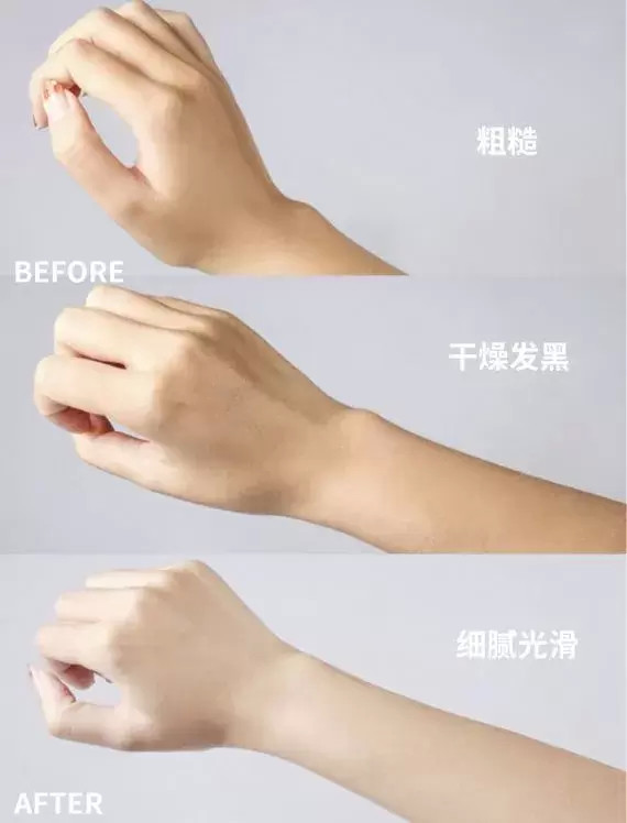 直觀的前后對(duì)比就是我的手臂顏色從之前粗糙干巴巴細(xì)紋橫生的質(zhì)感,到現(xiàn)在已經(jīng)變得細(xì)嫩很多。