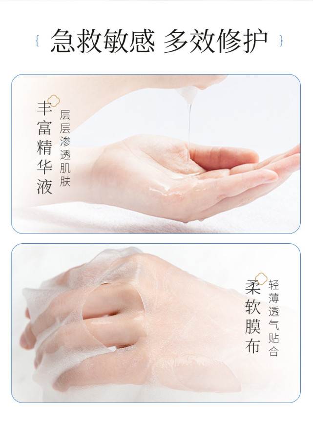 正因為有了以上幾種重要成分及運用了先進的酶切法技術(shù),加上優(yōu)質(zhì)的膜布,古草凝萃皮膚修護貼對內(nèi)可進入真皮層,修復(fù)受損細(xì)胞,促進皮膚纖維,母細(xì)胞合成膠原蛋白,從而愈合傷口,修復(fù)基底創(chuàng)傷;對外可作用于表皮層,修護肌膚天然保護屏障,防止水分營養(yǎng)流失,提升肌膚免疫力。對抗敏感肌!