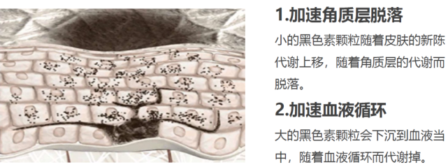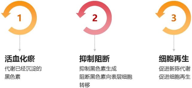 抑制黑色素沉著、抗炎等方面也有很好的療效;減少已經(jīng)生成、沉淀的黑色素,阻隔其向表層細胞的轉(zhuǎn)移,加速細胞新陳代謝、加快黑色素角質(zhì)細胞脫落等。