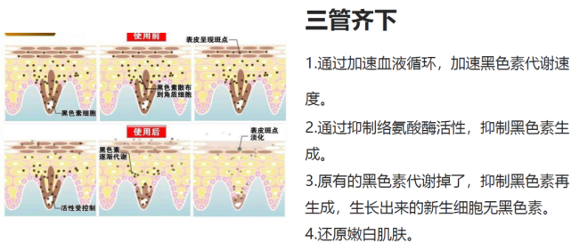使用古草凝萃【雪顏白】美白補水系列前后對比原理圖