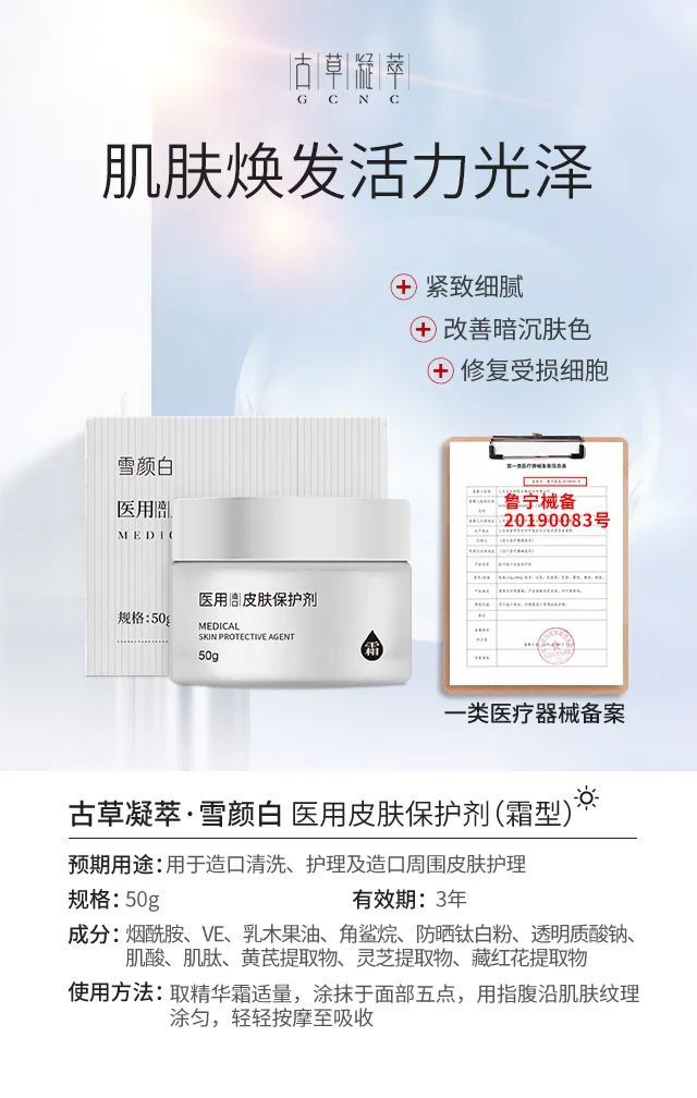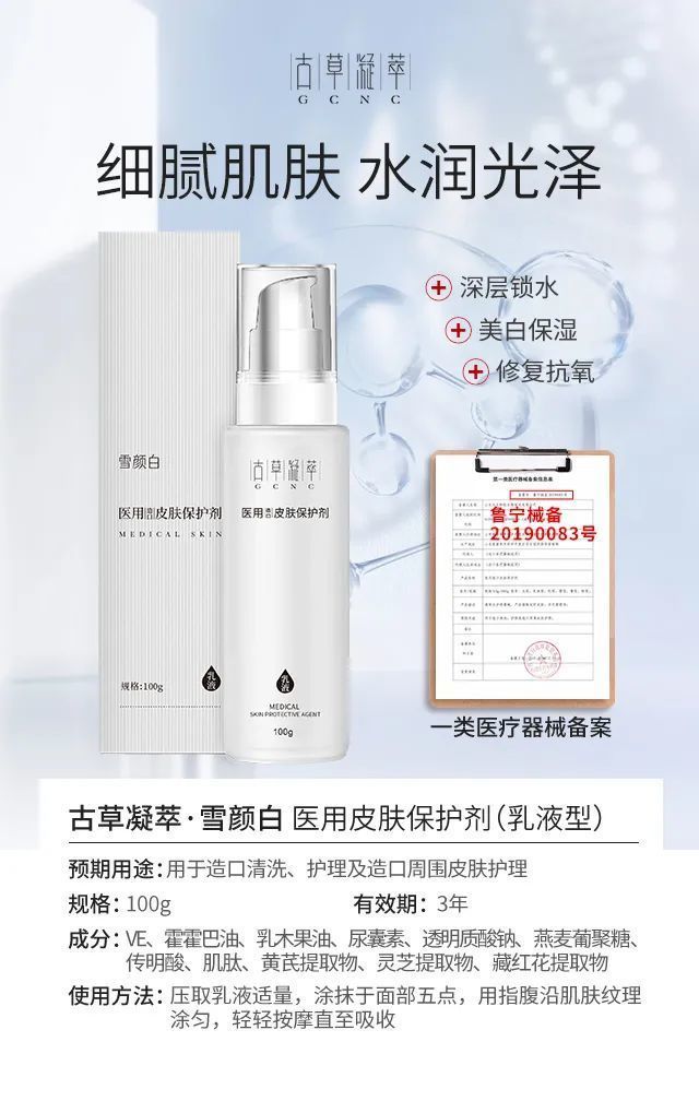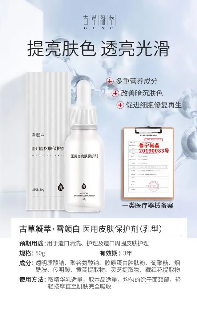 古草凝萃【雪顏白】美白補水系列具有獨特復(fù)配配方,堪稱美白補水神器,它主要含有黃芪、靈芝、藏紅花、煙酸、透明質(zhì)酸等明星成分,具祛斑美白保濕等功效,還原嫩白肌膚,一套解決肌膚多種問題。它屬于醫(yī)用級別產(chǎn)品,使用更放心,適合**膚質(zhì)。