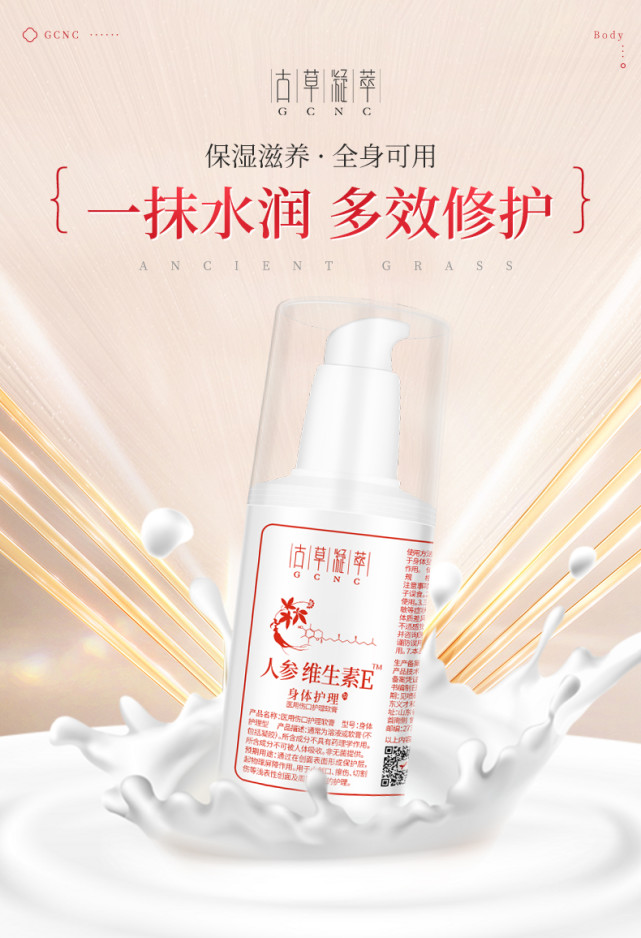 更重要的古草凝萃人參維e乳絕不含色素、酒精、香精等有害肌膚的成分,是少數(shù)真正能做到有害成分零添加的身體乳!并具多種天然成分溫和滋養(yǎng)修護(hù)受損干燥肌膚,多重呵護(hù)養(yǎng)膚,保濕滋潤(rùn)!敏感肌可以完全放心使用!